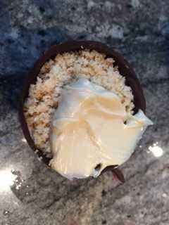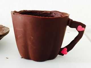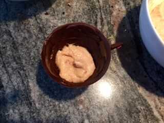 3. cuchara la mezcla en las tazas de chocolate hasta casi completo. Paquete con algo de presión.