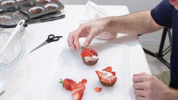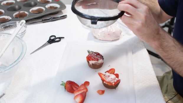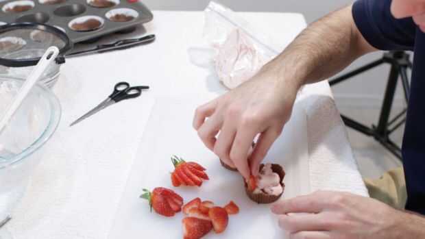 Cheesecake de fresa Mousse Chocolate tazas (9 / 10 paso)