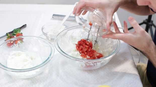 Cheesecake de fresa Mousse Chocolate tazas (4 / 10 paso)