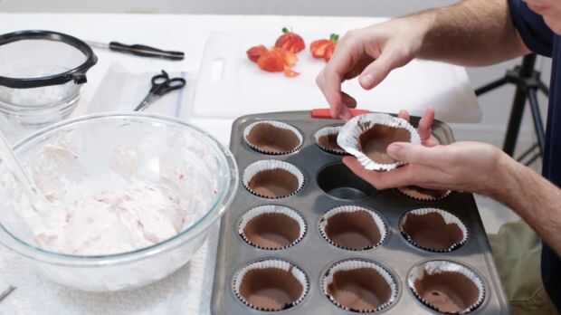 Cheesecake de fresa Mousse Chocolate tazas (7 / 10 paso)