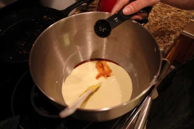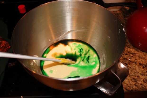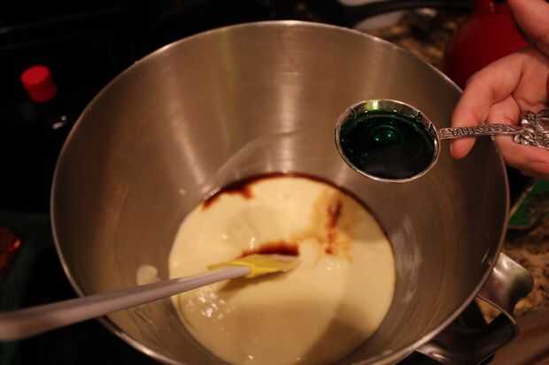 Finalmente. Añadir las 4 cucharadas de crema de menta y 1 cucharadita de extracto de vainilla en mano. Mezclar hasta que se incorporó y se obtiene un color rico.