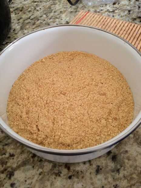 Se puede utilizar maicena galletas o cualquier tipo de galletas que se desmenuza fácil. Y 150g de mantequilla derretida. Puede usar menos mantequilla si lo desea.