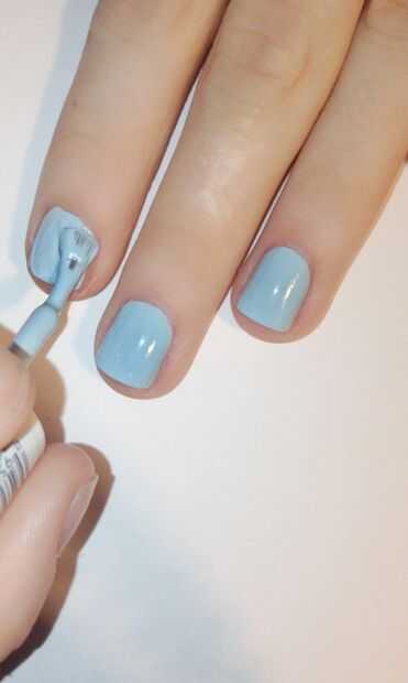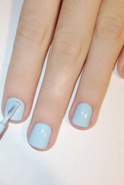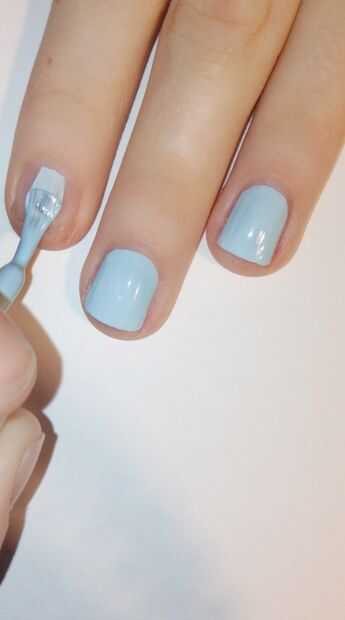 Luego aplicar el color base. Este será el color de fondo en la impresión del guepardo. Im usando a Essie "Manzana de caramelo de menta". Este color es una bonita luz azul. Me lleva 3 capas para obtener completamente opaco. Diversos colores y marcas varían en la capa de 'uso'.