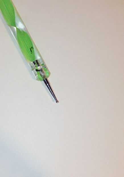 Tomar el color del soporte y se coloca sobre un trozo de papel. Encontrar una herramienta puntea que es más pequeña que el usado para las manchas. También funciona un palillo de dientes.