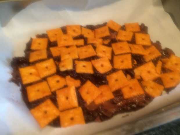 esta torta es como una cookie de taza de mantequilla de maní de chocolate grande y va bien con una cuchara de helado o un vaso grande de leche.Paso 1: Los ingredientes Lo que se necesita para la corteza:pretzel machacado 1 1/2 tazas1/2 taza de azúcar