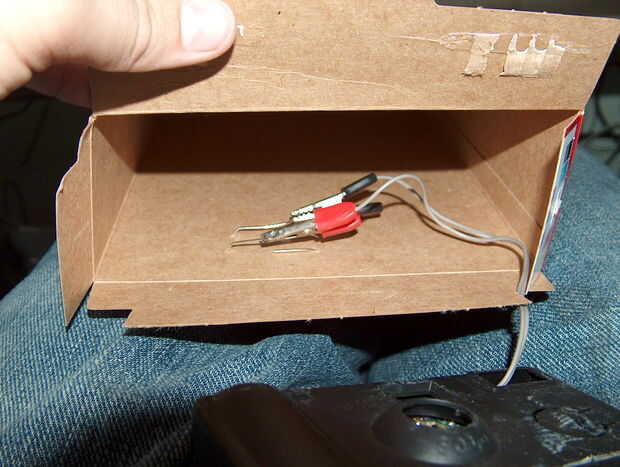 Ya tenía una cámara de trabajo paralizador con pinzas de cocodrilo, pero el principal es el mismo: usted está haciendo una serie curcuit con tu amigo como el interruptor. para PRECAUCIÓN extra, poner alguna cinta sobre las conexiones.