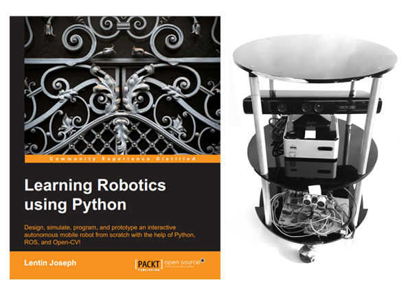 He documentado el procedimiento de todo el edificio de este robot en un libro llamado Aprendizaje robótica usando Python publicada por la editorial PACKT. El libro ya aparece en R.O.S Blog Robohub, sitio web de OpenCV, Python reserva lista etc..