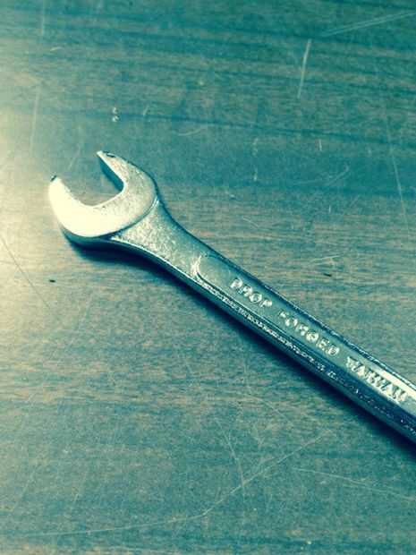 Después de alimentar los tornillos a través de allí los agujeros, encajamos el metal en los tornillos seguido por una tuerca que aprieta con una llave de tamaño 3/8