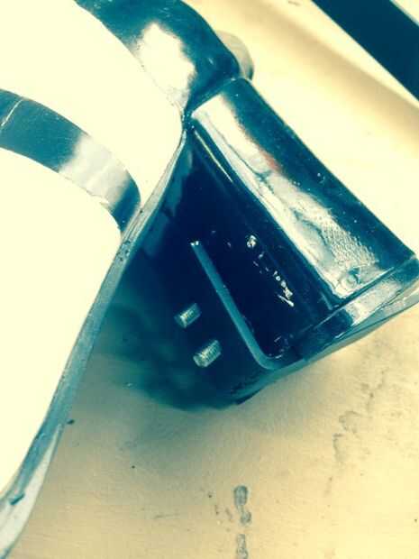 Esta parte puede ser la parte más difícil, conectar el metal a la bota. Empezamos por dos agujeros en la parte interior del talón (el proceso puede variar dependiendo si el tacón de su bota es hueco o no) y y luego dos agujeros idénticos en el metal (en todas nuestra perforación hemos utilizado una broca de 3/16 tamaño) luego nos alimentó dos tornillos por el interior del talón (nuevo proceso puede variar dependiendo de si son o no los talones de sus botas hueco o no)
