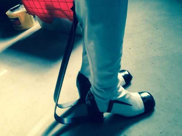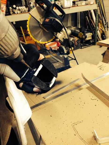 A continuación, utiliza un que hemos doblado los lugares donde nos habíamos marcado los (específicamente donde el aluminio se conecta con el talón y la parte superior de la bota (en la pantorrilla). Para hacer más fácil flexión se utilizó un soplete para calentar el metal. Entonces doblar la parte del metal que se extiende desde el talón hacia arriba, nos estas empujando por encima de un "rodillo extensible" (ver no fotos, tienen idea lo que llamarla!)