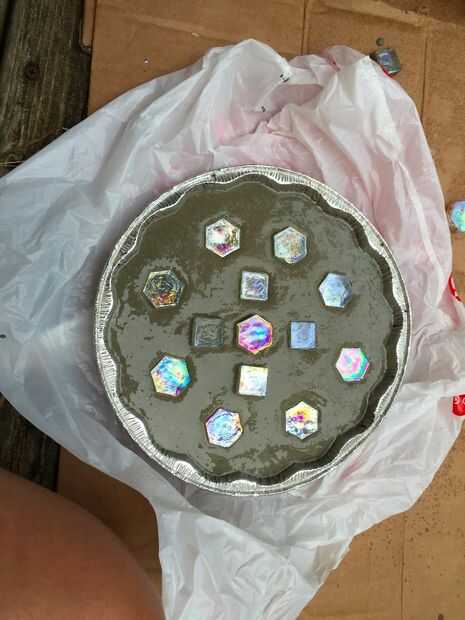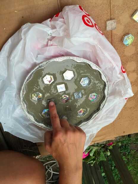 En este diseño, hemos añadido los mosaicos al hormigón ya que permite hacer los mosaicos en el concreto. También puede utilizar sellos de alfabeto para personalizar el diseño aún más.