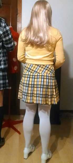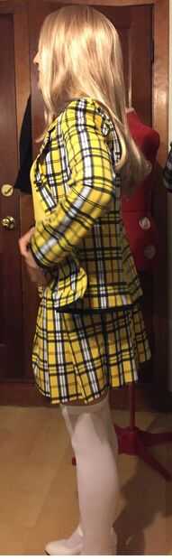 Como si! Mi amigo y yo hemos estado queriendo hacer Cher y Dionne durante años y creía que esto sería un buen año con el resurgimiento de "Lujo" de la mirada. El traje que hice es un ajustado traje de chaqueta y falda plisada y mochila furry. El suéter de la Rebeca fue comprado y acortado. He añadido los grandes botones nacarados. Los pliegues de la falda son pliegues de la mano derecha de 2 pulgadas, cosidos de 1,5 pulgadas de la banda de la cintura, con una tapeta plana en la parte delantera donde los pliegues cambian las direcciones. La chaqueta fue modelada de un existente Urban Outfitters blazer tenía, y la falda fue cubierta. Se encontraron muy fácilmente. Mis proyectos favoritos son réplicas. Soy detalle obsesionado y prometo que esto es exacto :)