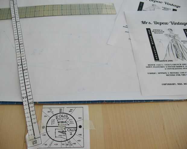 Las piezas de falda masivo que plantea un desafío diferente. Esos pequeños trocitos de patrón terminaban creando una falda que termina sobre la rodilla. Extender las líneas rectas no es un problema, pero no incluyen los pliegues. Eso está bien, excepto la única imagen que tenía que trabajar con era un dibujo estilizado!