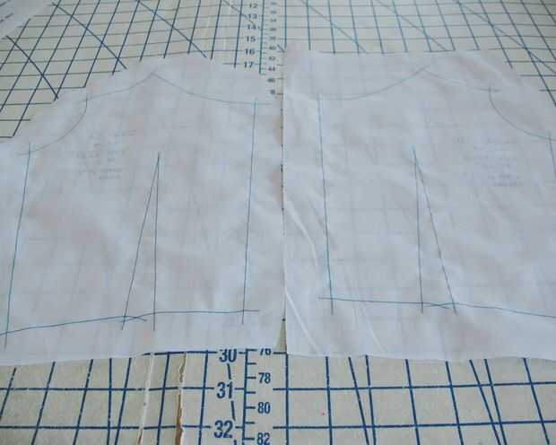El siguiente paso fue combinar los dos corpiños de los dos diseños separados. Después de emparejar la cintura de ambos, he trazado y marcó las diferencias. Los dardos emparejados para arriba muy bien, que era una buena señal!