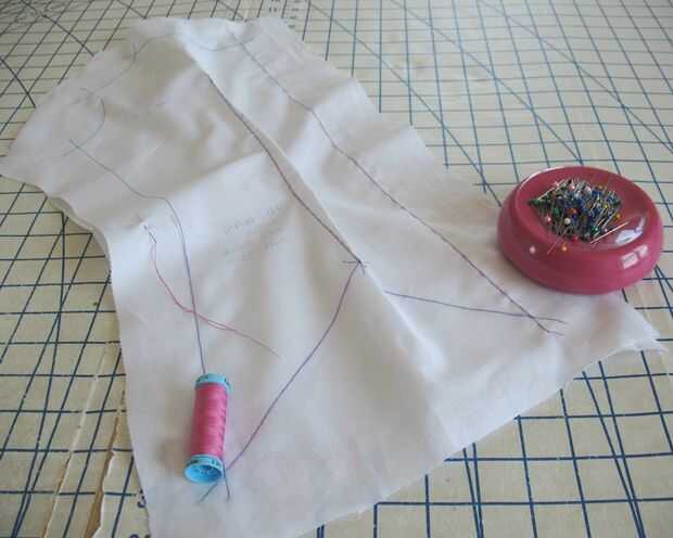 Puesto que estos patrones no incluyen márgenes, decidí ir a por ello y probar el método de costura de Susan Khalje e hilo trazó las líneas de costuras, dejando márgenes de exceso para jugar con.