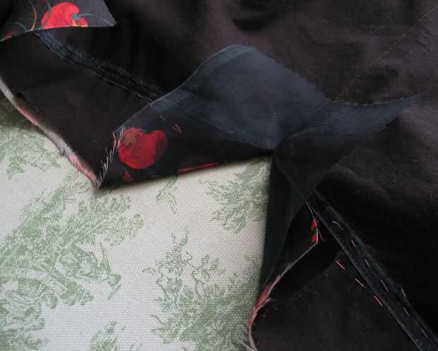 La apertura del cierre del centro de la espalda se reforzaba con una tira de organza de seda. La seda/de las lanas y el subrayado de algodón es bastante estable, pero hubiera sido tonto ir a tantos problemas con todo lo demás, sólo que esa costura estiramiento, derecha?!