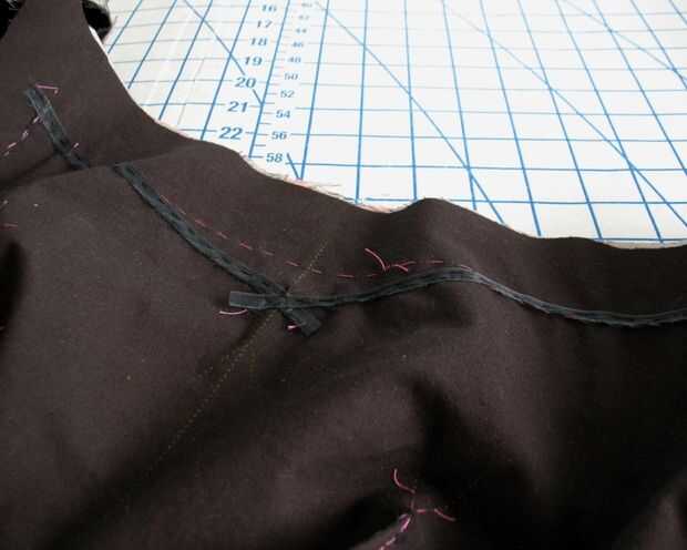 Esa esquina interna y procedimiento derefuerzo sólo muy bien para el punto central sobre el escote, así, acabar con la necesidad de una orientación. Dos problemas resueltos!