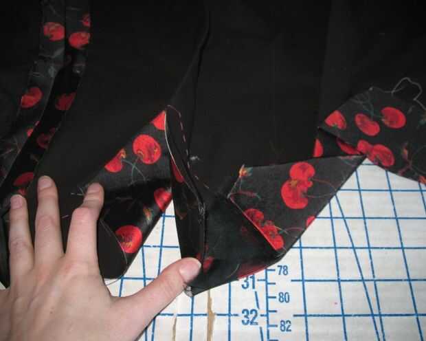 La guarnición de la blusa fue cortada para terminar justo por debajo de la cintura (a la que he añadido un par de deshuesado de canales en las costuras laterales y frente dardos).