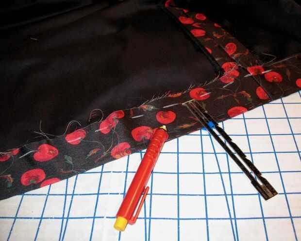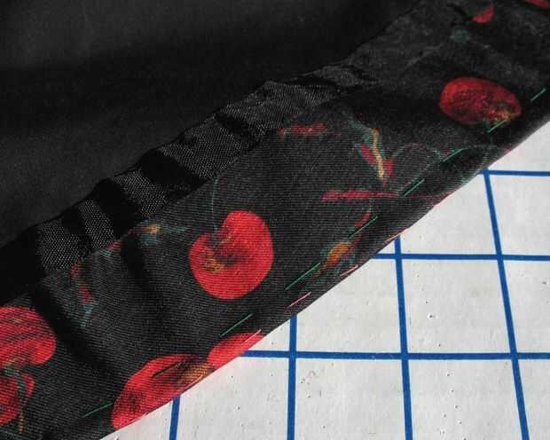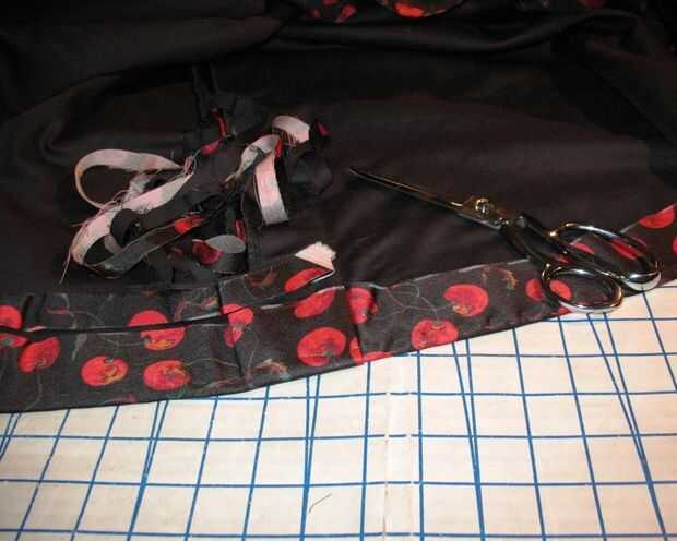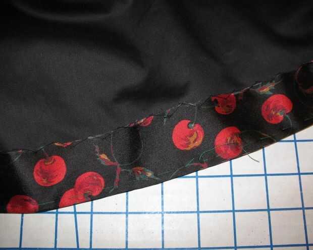 Uniformar al margen de exceso y recortar distancia. El ruedo fue cosido a captura a subrayar la falda. A continuación cubrí ese borde con alguna costura vinculante.