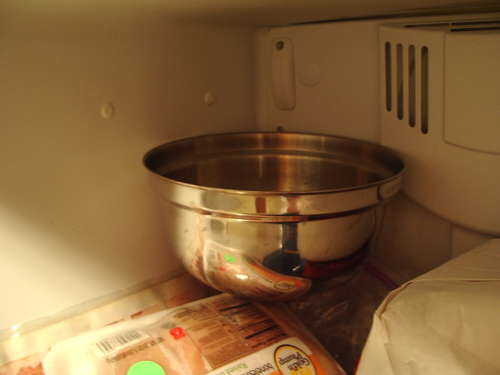 Tenía un acero inoxidable tazón que puse mi chocolate, así que sería fácil de quitar una vez enfriado.