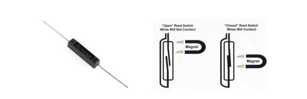 Estos interruptores son sensibles a campos magnéticos. Cuando se detecta un campo magnético, el interruptor se encenderá, si no será apagado. Operación de sensor reed se muestra en la figura (5). Dentro del interruptor hay dos piezas de metal. Cuando se acerca un imán, los dos cables toquen (atrajo) que provocará un "circuito cerrado", si es un "circuito abierto".