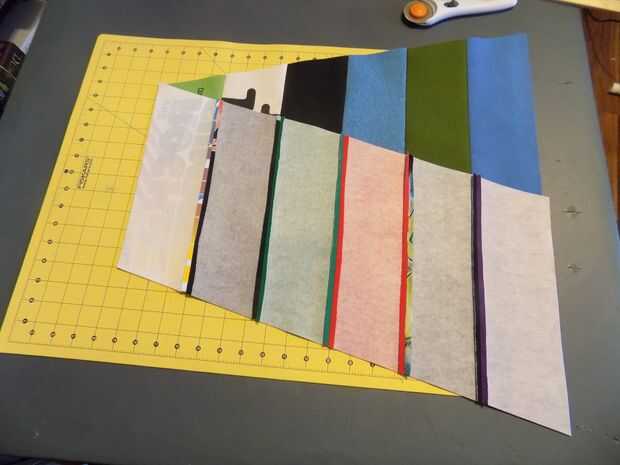 Una vez que hayas cortado todas las secciones en una franja, coser cada sección como en la imagen y presione la costura. Deben tener una raya vertical con 30 piezas.