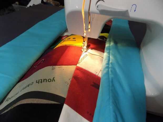 Coloque su máquina en el lado derecho de una tabla para que el resto del tejido (la parte enrollada) es apoyado por lo menos algo mientras que se ejecuta a través de.