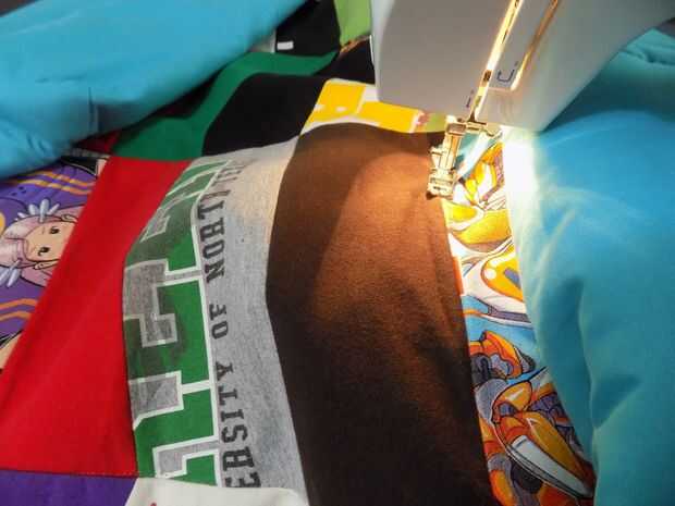 Consejo: Cuando se llega a un punto en estas costuras, use la rueda de mano hundir la aguja en el punto. Luego, levantar el pie y girar el tejido para que la costura está alineada con la siguiente sección de la costura. Esto ayudará a mantener los puntos de sutura en la zanja en las curvas.