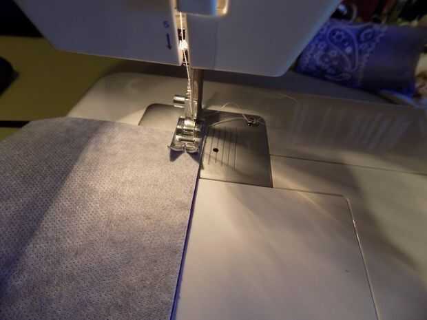 Configurar su máquina para coser una puntada recta 1/4" desde el borde inferior de la primera pieza con hilo de algodón.