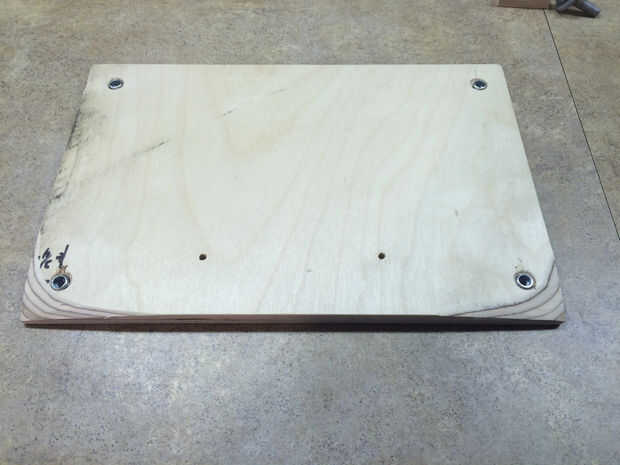 1. Ahuse los bordes superiores de la parte trasera del tablero de gancho. Usando una lijadora de banda a baja velocidad funciona mejor. Ajuste del tablero hasta que encaja completamente en seco y estable sobre el agujero.