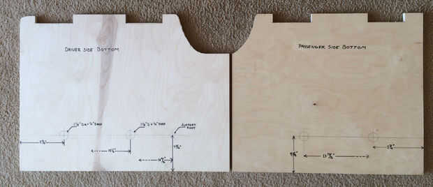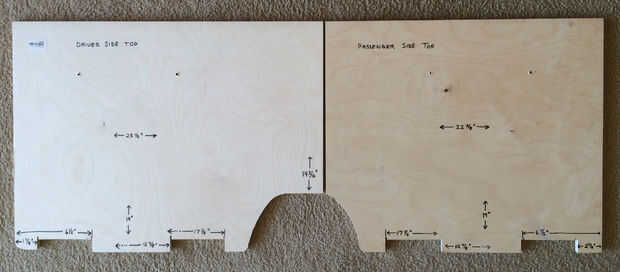 Deliberadamente me decidí a hacer un split de 55/45 para la plataforma. Hace las piezas más manejables y le permite acceder al almacenamiento en un lado mientras que todavía teniendo carga encima de la otra. Como resultado, las dimensiones conocidas dejan espacio entre los paneles para la alfombra envolver los bordes. Que tenlo en cuenta si decides hacer un panel grande.