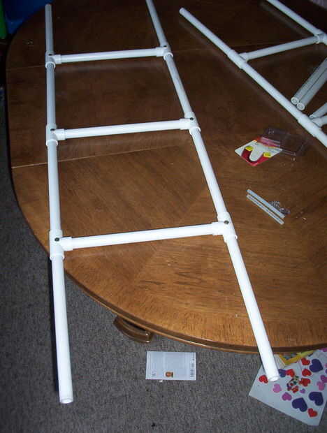 Las escaleras son la parte más fácil. Algunos tubos de PVC y tees juntas funcionó a la perfección. La pregunta seguía siendo de cómo asegurar al coche. Un par de cadenas se vería un poco pegajoso (como una escalera de PVC ¿no?) así que quería algo menos visibles. Mientras que las compras para la señalización, me encontré con algunos buenos imanes. Un poco de pegamento para fijarlo a la escalera y era oro! Hasta que probé en el lado de la nevera y solo se deslizó al piso. ¡No hay problema! Añadir dos imanes más para un total de 6 por escala de atracción extra y una capa fina de pegamento caliente en el lado del coche del imán para la tracción adicional y estábamos en el negocio. Para el próximo mes mi refrigerador tenía 2 3 escaleras pegadas a la cara.