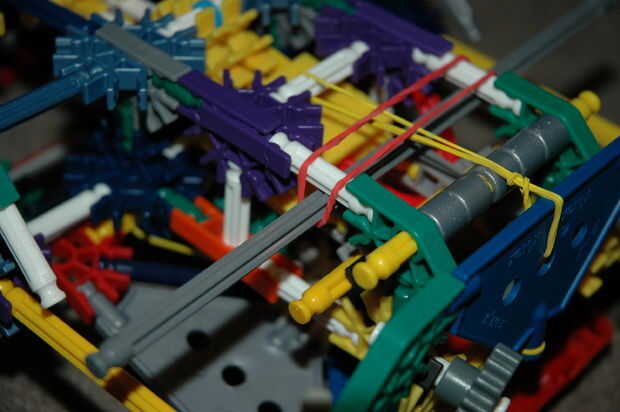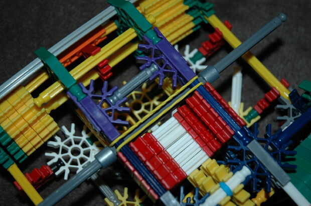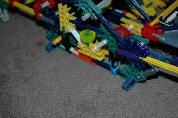 en fotografía 9/10 se necesita eliminar la parte que se muestra en la foto 10. Cometí un error al mostrar como hacer el chasis, yo puse una muchas de las piezas rojizas con las barras blancas en el medio