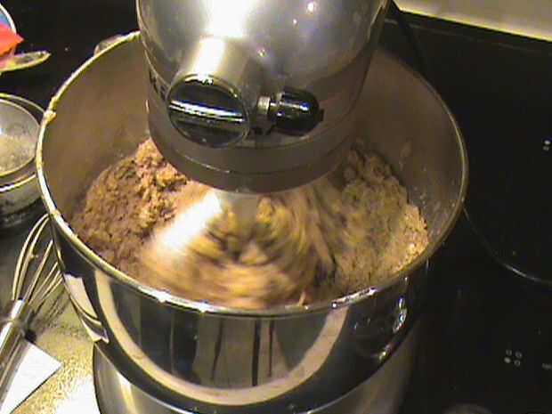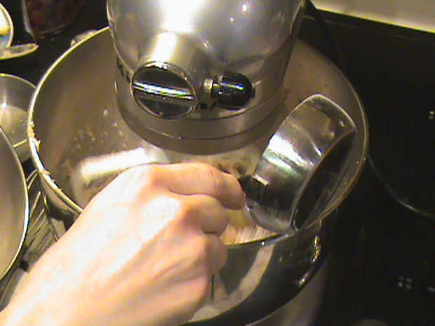 Añada lentamente los ingredientes secos en la batidora en baja para integrar plenamente los sabores juntos.