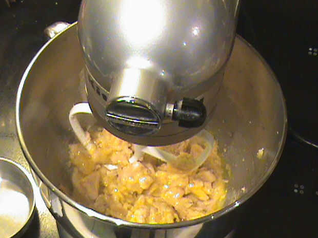 Añadir el huevo a la crema de mantequilla y los azúcares.