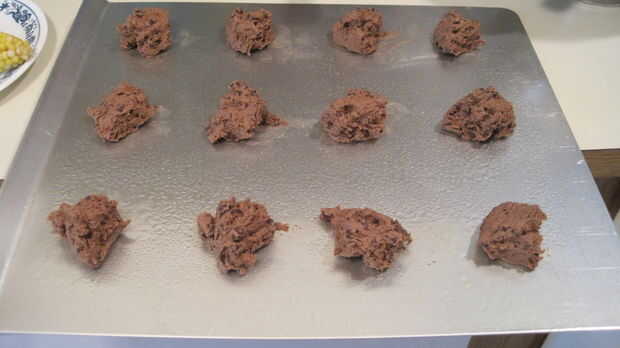 Ligeramente grasa tus galletas y colocar la masa en ellos por las cucharadas.