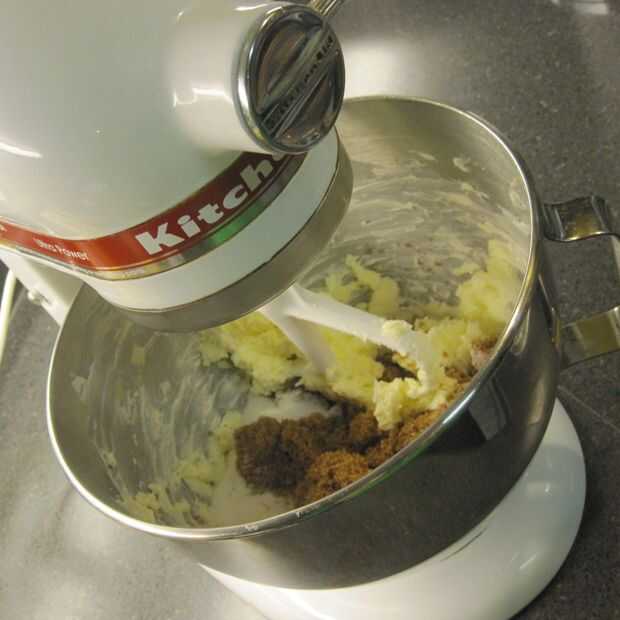 galletas de chispas de Chocolate de la materia.Paso 1: Crema de dos palos de temperatura de la mantequilla sin sal con una buena cantidad (aproximadamente 1.5 c) de azúcar morena. Un mezclador es bueno, pero también funciona una cuchara de madera.Pas