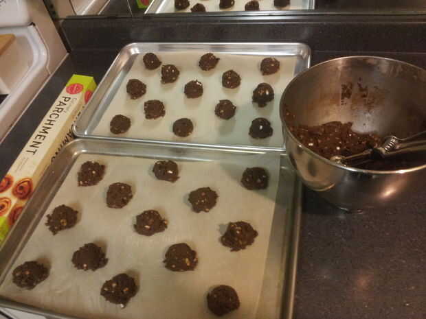 Hornear galletas de 10 a 13 minutos o hasta que las galletas se encuentran alrededor de los bordes, pero todavía en el centro. Cuando horneo 2 galletas a la vez me tumbe las hojas y cambiar los estantes a la mitad el tiempo de cocción.