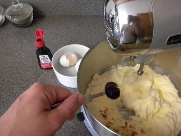 3. detener la batidora y raspar cuidadosamente el recipiente de la batidora. Añadir 1 cucharadita de vainilla y batir, una vez más en el medio, para combinar.