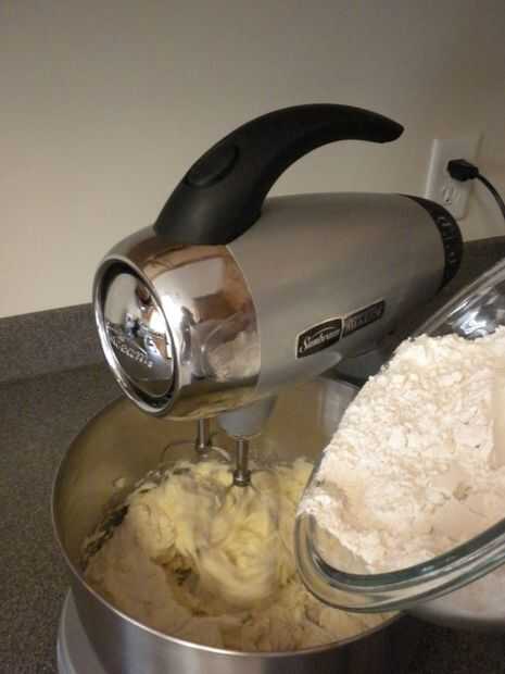 2. Agregue los ingredientes secos a la masa en tres adiciones.