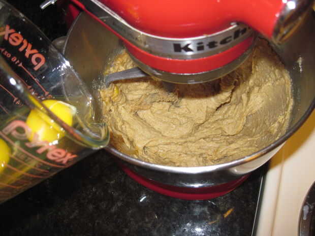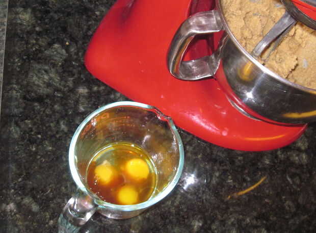 Seguir adelante y romper sus huevos y la yema de huevo en un líquido midiendo taza u otra cosa que sea fácil de verter de. Mida su vainilla y poner con los huevos así. Con su mezclador en medio agregar los huevos uno a la vez. Permita suficiente tiempo para incorporar completamente antes de añadir el siguiente. Todo el proceso debería tomar sólo uno o dos minutos. Cuando haya terminado, apague la batidora y raspar hacia abajo los lados del tazón de fuente.