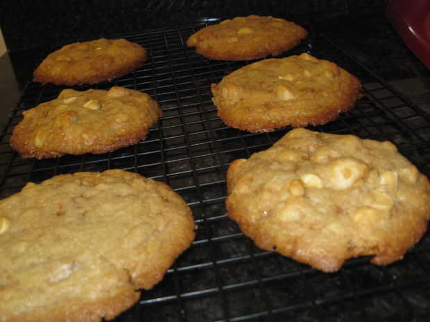 Chewy galletas de nuez de Macadamia blanco Chocolate con pedacitos de caramelo (7 / 7 paso)