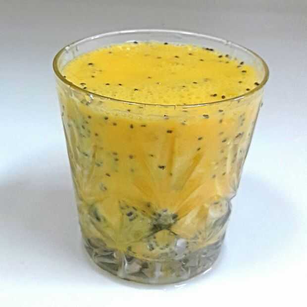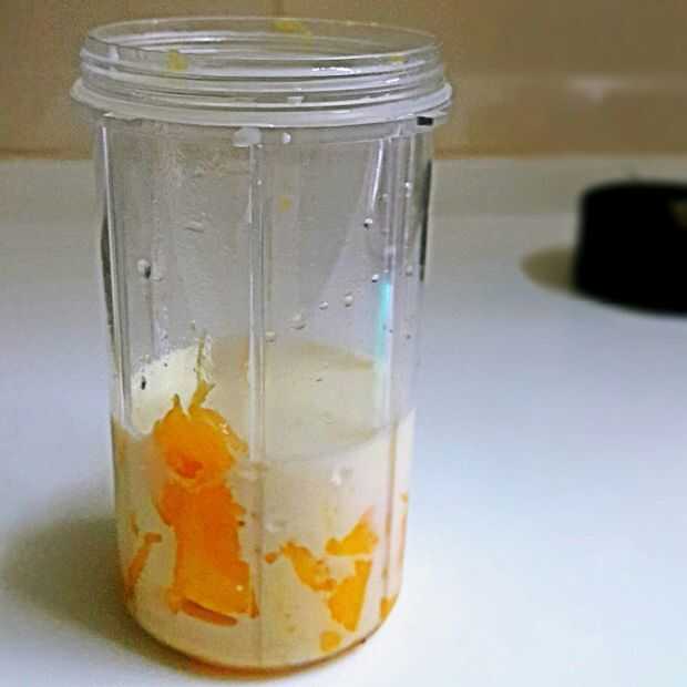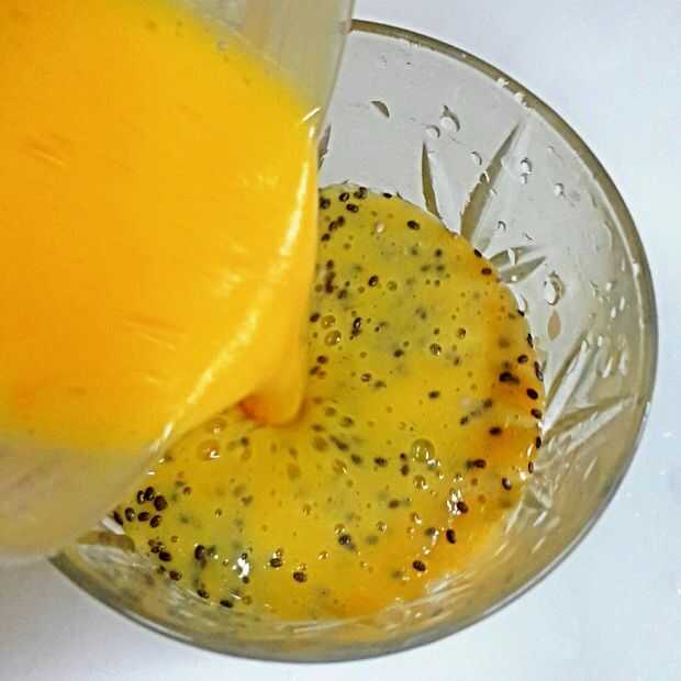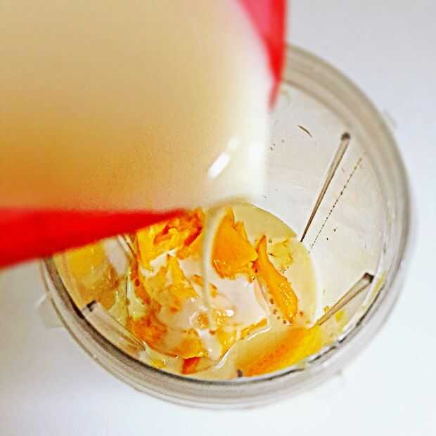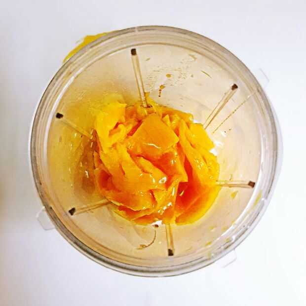b. agregar en proceso en un suave crema de mango y néctar de agave.