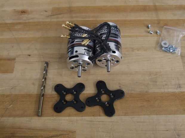 Los motores Turnigy deben vienen con 4 tornillos de cabeza plana M4 en una pequeña bolsa de plástico. Monte el motor firmemente a la placa con los tornillos. Si tienes un compuesto trabarroscas, utilice algo de él en las roscas para evitar que las vibraciones del aflojamiento de los tornillos.