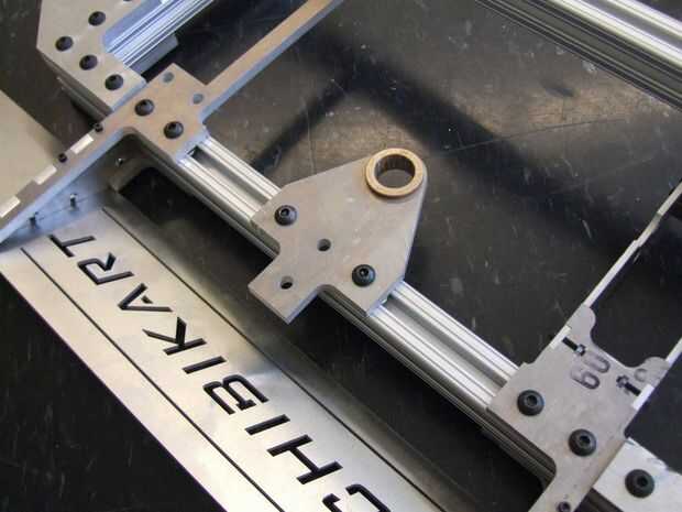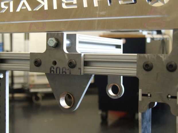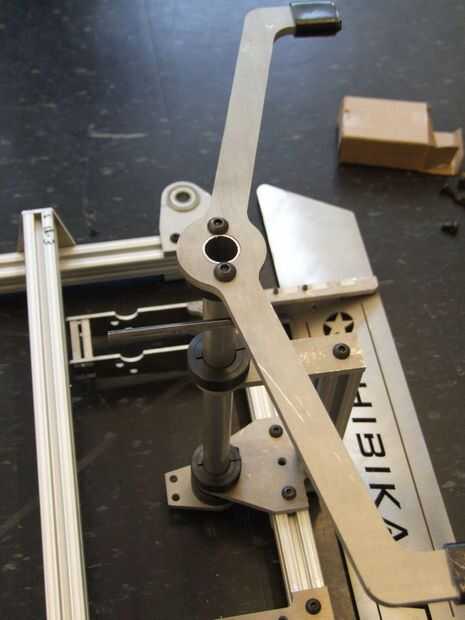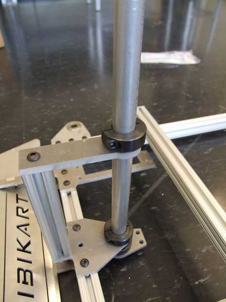 Asegúrese de que la columna de dirección es tan vertical y recto como lo puede conseguir - no sesgado. A continuación, apriete todos los tornillos 1/4"-20 marco en la placa de soporte y refuerzo inferior. Realmente la manivela hacia abajo sobre el perno largo 1/4"-20 que ancla la extrusión de 6" a través del separador en la parte inferior y asegúrese de que una vez más que el tornillo de montaje individuales de soporte superior es muy seguro.