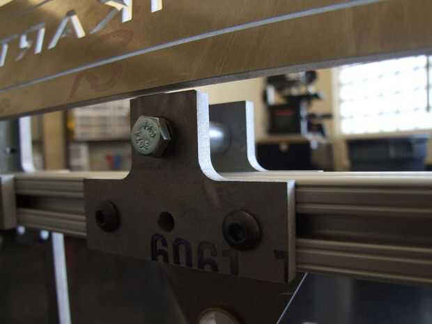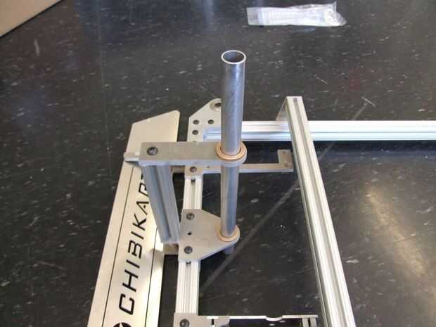 Apriete el tornillo largo 1/4"-20 en la parte inferior un poco, manteniendo los casquillos alineados y ver si en cualquier momento el eje comienza a atar. Si lo hace, puede que necesite para asegurarse de que su extrusión de 6" es tan cuadrado como sea posible en ambos extremos, tal vez lo que vuelva a presentar.
