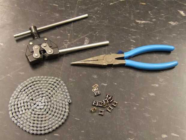 Con el motor en su posición más baja, envuelva una longitud de cadena en ambos piñones y contar el número entero más cercano de enlaces externos necesarios para que las cadenas a. Básicamente, un eslabón maestro provee un enlace externo extraíble. Contador de 19 enlaces externos ("parcelas"). Habrá un vínculo externo que, si sólo se podría eliminar, podría exponer un enlace interior que luego puede conectar el eslabón maestro.