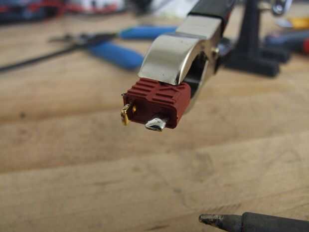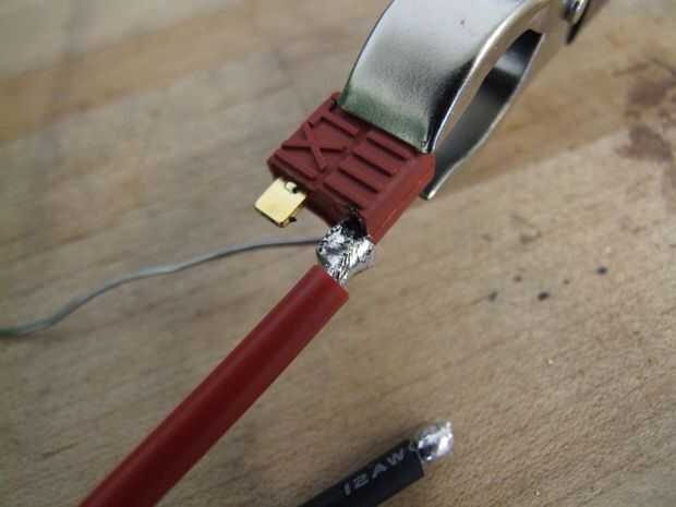 El hierro para la conducción de calor de la lata, pero una pequeña soldadura extra en (hacer estas conexiones bloques sólidas sólo implica mucha fuerza bruta calor dumping). La mejor manera de conseguir una buena articulación es pone la punta plana a través de la ficha de Decanos y su cable, los blobs se funden juntos ojala al instante.