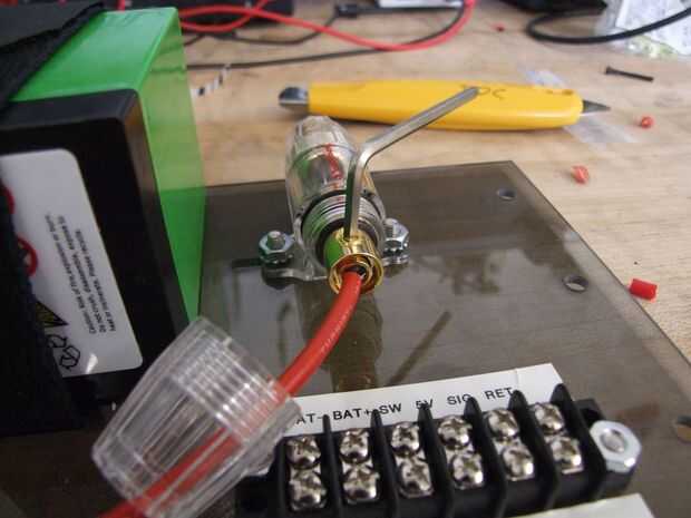 Sacar la "tapa" del sostenedor del fusible y el cable a través del hilo de rosca. Asegúrese de que usted utilice el extremo más cercano a las terminales de la batería.