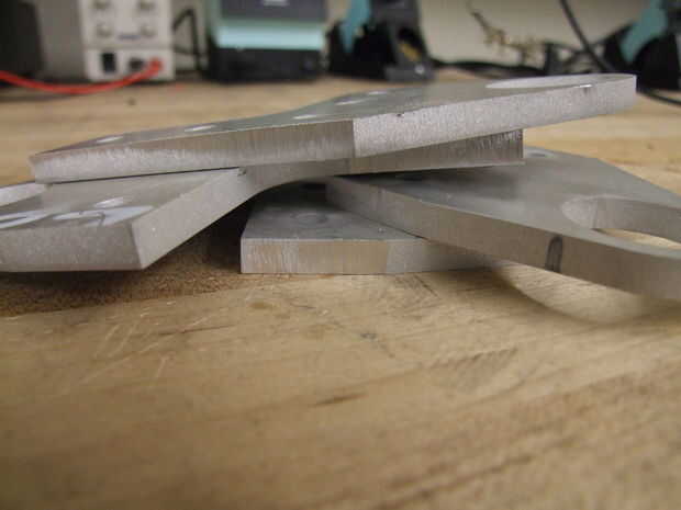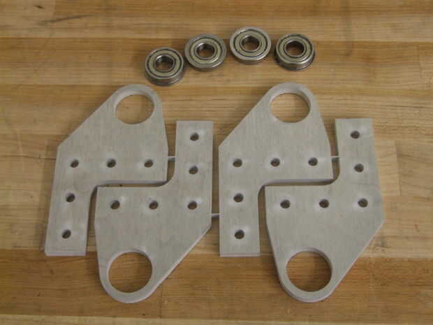Usted tendrá que crear pares de imagen de espejo de las placas. Organizar las placas de esquina y rodamientos como se muestra en la imagen - sus bridas deben mirar hacia afuera. Cada cojinete va con una placa. Esto debe hacerse correctamente, o usted podría terminar con placas múltiples del mismo tipo, que sería... incómoda.
